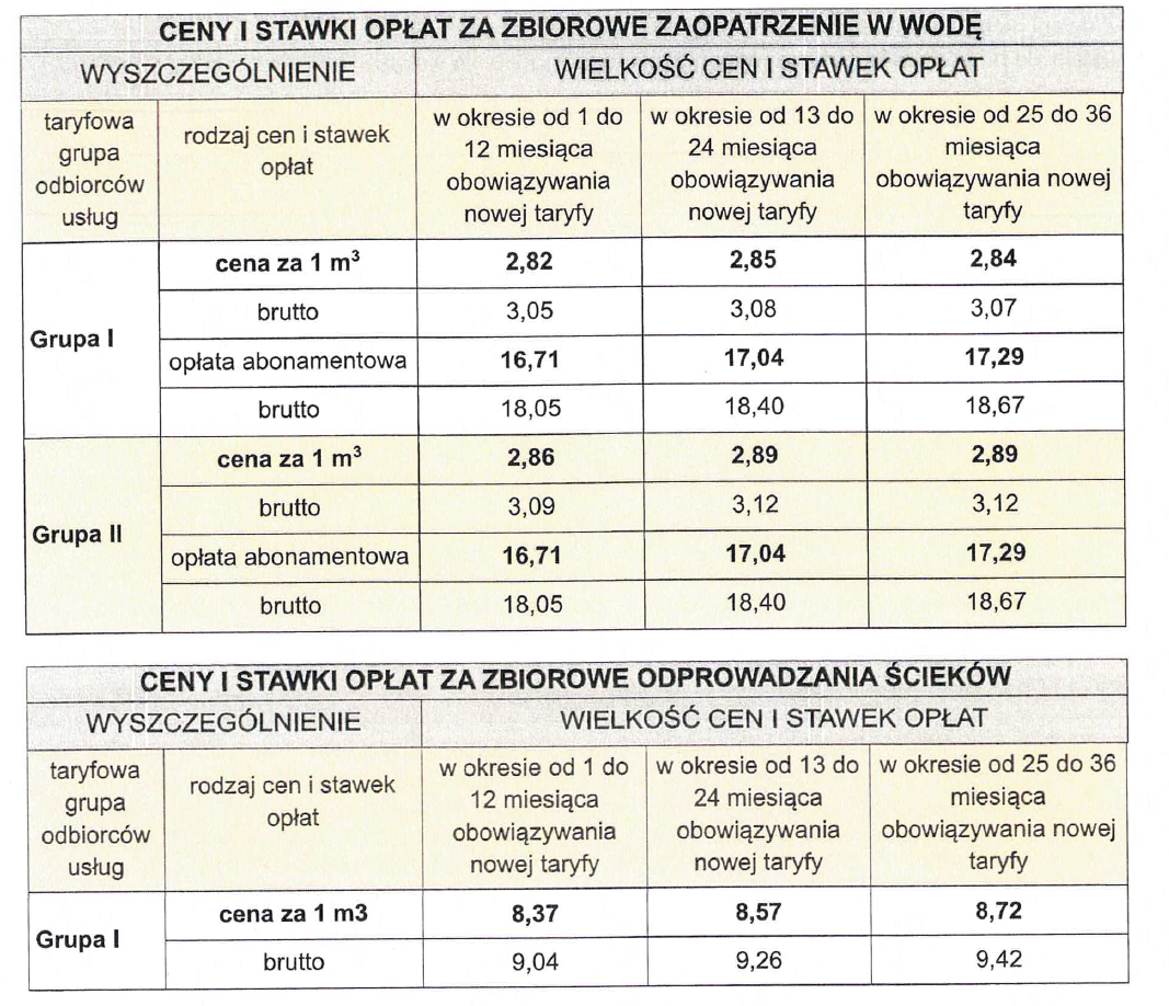 Taryfy zostały zatwierdzone przez Państwowe Gospodarstwo Wodne Wody Polskie Dyrektora Regionalnego Zarządu Gospodarki Wodnej w Lublinie. Decyzja organu w załączeniu.
